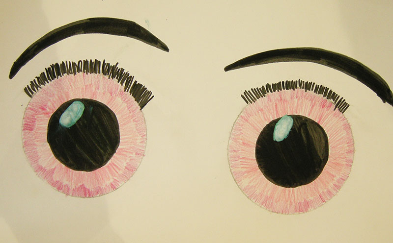 « C’est l’histoire d’un petit chat qui s’appelle Sonic. Et un jour, il sortit dehors parce que c’était l’été et il faisait très très chaud. Et le ciel lançait des paillettes, et du coup parce que ce chat était très gentil avec sa maîtresse qui s’appelait Léonie. Et du coup, ces paillettes de couleur étaient grises, jaunes et roses. Et il y avait aussi des arbres, des nuages, et il y avait beaucoup beaucoup de soleil parce qu’il faisait très chaud. »